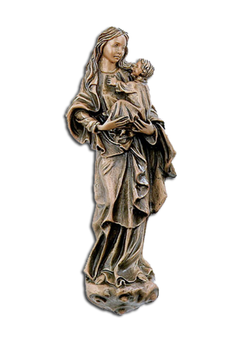Madonna mit Kind in Bronze als Wandornament, Halbplastisch